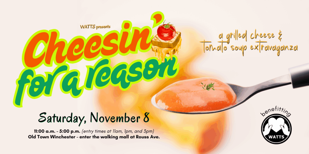 Join us for the first ever Grilled Cheese and Tomato Soup Extravaganza for Winchester! WATTS will be “Cheesin’ for a Reason” this fall and we hope you’ll come out and join us in honor of one of our guests’ favorite meals.