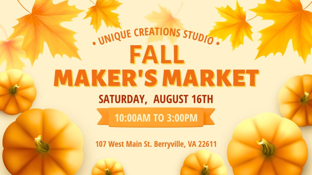 Join us for our Fall Makers’ Markets on August 16th from 10am-3pm to find unique, handmade goods from local makers, artists, and crafters. Gift Basket Raffle will be $2 a ticket or 6 for $10.This event is rain or shine and admission is free to the public!