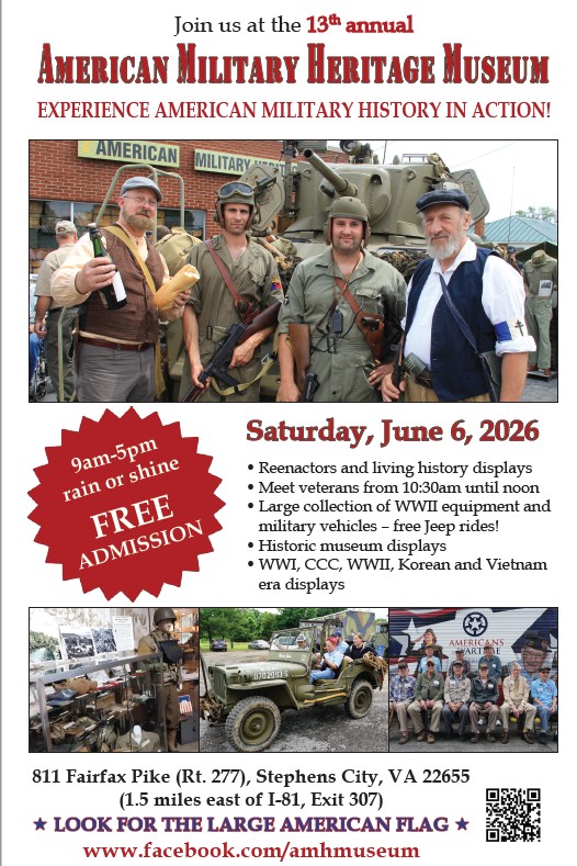 The event will take place from 9 a.m. to 5 p.m. at the museum, which is located at 811 Fairfax Pike (Va. 277), 1.5 miles east of Stephens City.