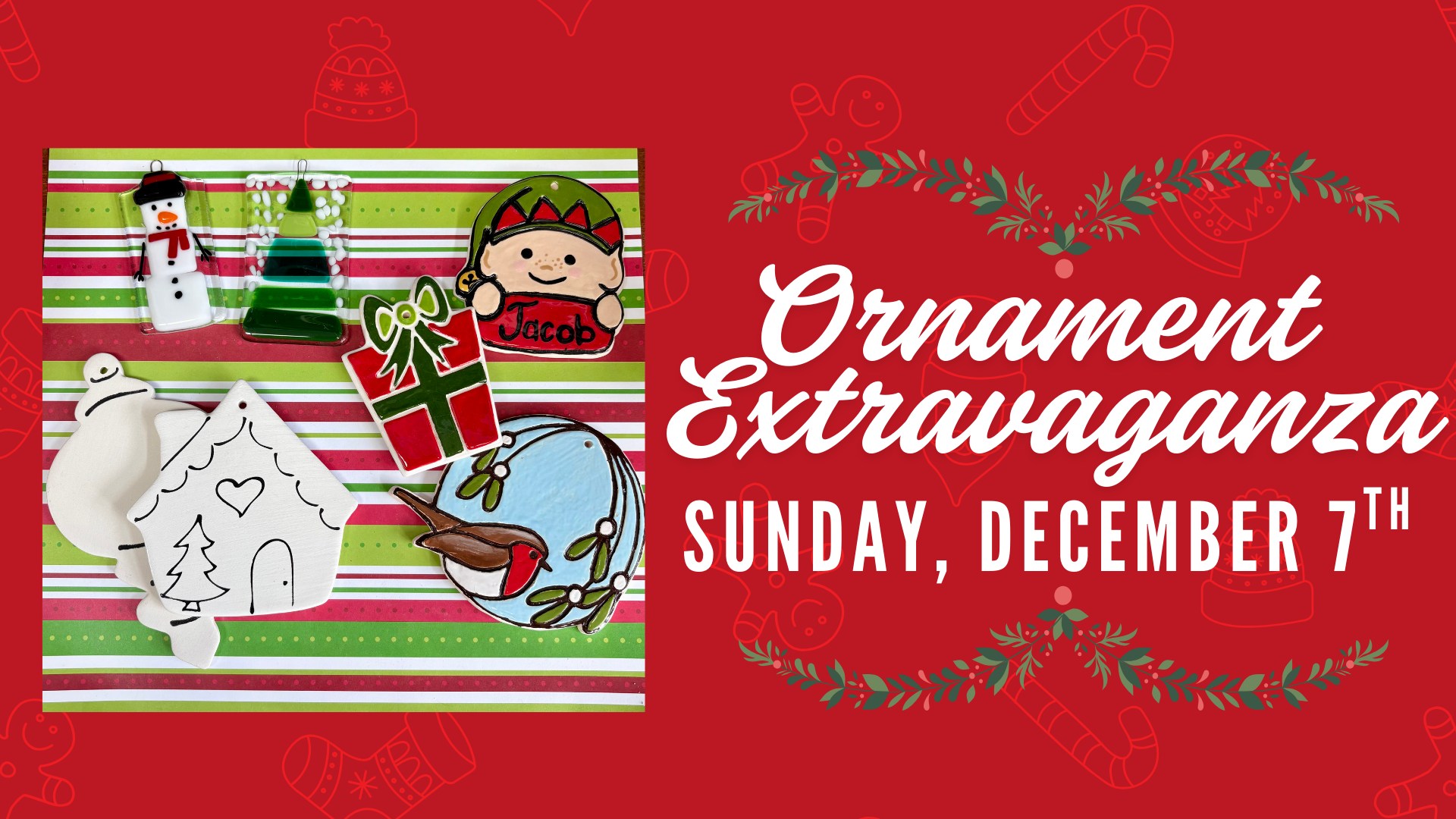 Join us at the Polka Dot Pot in Old Town Winchester to create your own glass or clay ornament. If you’d like to create outside of the studio, grab a to-go kit and bring it back to be fired! This is one of your last chances to create lasting memories at our studio this holiday season, don’t miss it!
