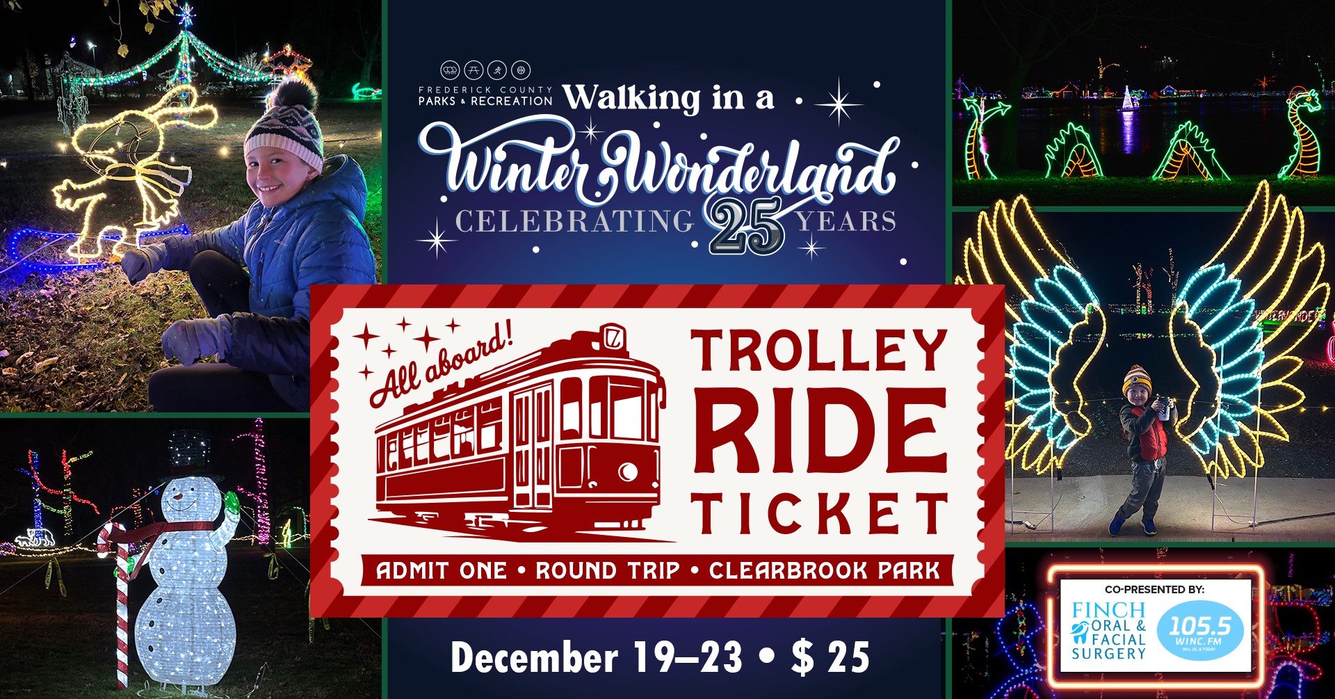 Enjoy a magically decorated holiday ride on the Winchester Trolley to Walking in a Winter Wonderland from December 19th to 23rd.