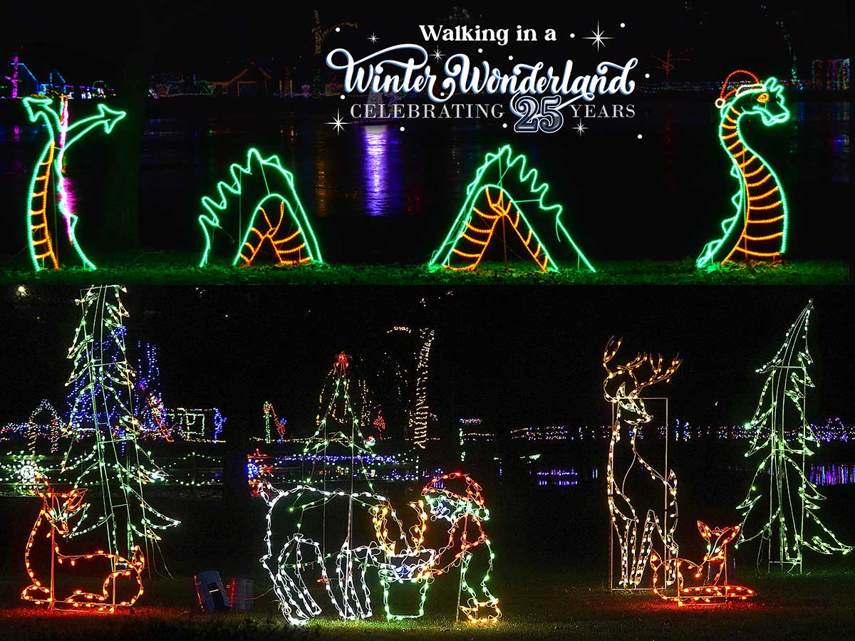 Create lasting holiday memories as you wander down the beautifully illuminated 0.5-mile paved path at Clearbrook Park, where captivating light displays and cheerful music set the scene. Dive into the enchantment of hundreds of thousands of twinkling lights, and be dazzled by our incredible computer-controlled light show, perfectly synchronized with delightful tunes.